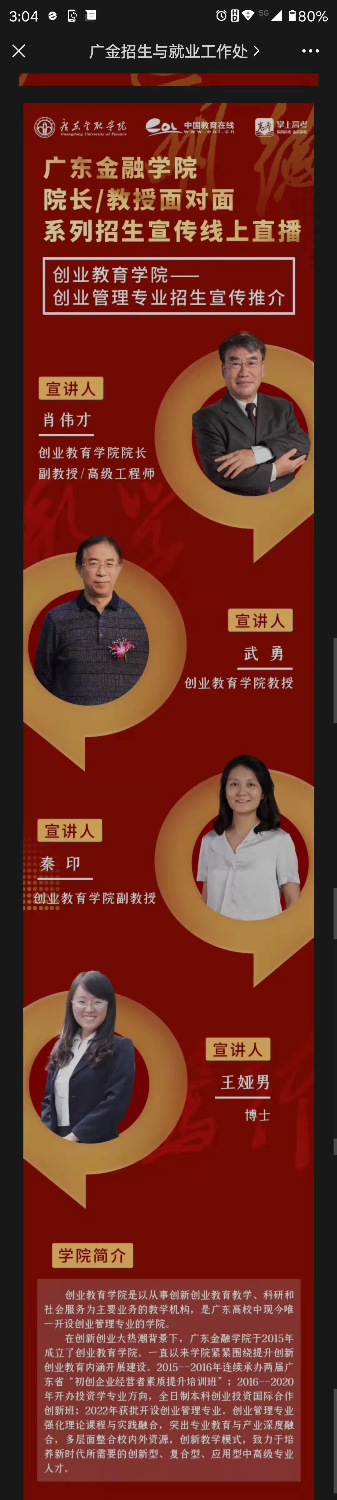 在本次直播互动中,首先播放了创业管理专业宣传片。随后,taptap点点肖伟才院长以“紧跟国家发展战略,为粤港澳大湾区培养新时代创新创业型人才”为题,从创业管理专业发展背景、我校开办创业管理专业优势与机会、我校创业教育架构与学科发展方向三方面对创业管理专业基本情况进行了介绍。