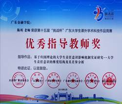 2019年5月,第十五届“挑战杯”广东大学生课外学术科技作品竞赛决赛在佛山举行,taptap点点教师陈昕副教授指导的学生参赛项目《基于归因理论的大学生责任意识影响机制实证研究—大学生责任意识的维度结构及其差异分析》荣获特等奖,陈昕老师荣获优秀指导教师奖。