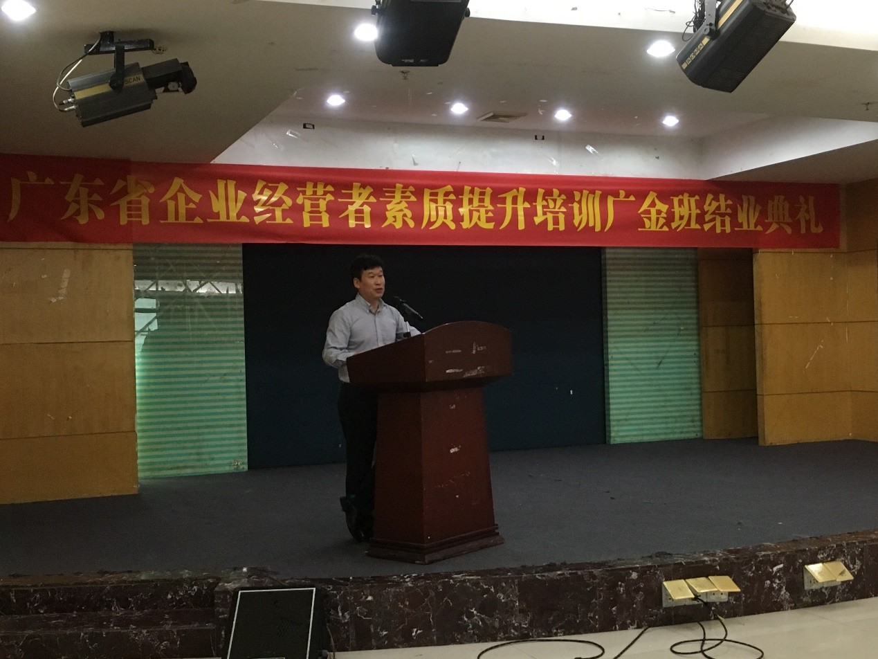 4月24日上午,我校创业教育学院举行了2015年度广东省初创企业经营者素质提升培训taptap点点官方网站研修班结业典礼,历时三个月的研修班完成各项培训任务圆满落下帷幕。省人力资源与社会保障厅就业促进处高良锋处长、学校副校长王醒男、创业教育学院院长、教师及研修班的全体学员共50多人出席了结业典礼。