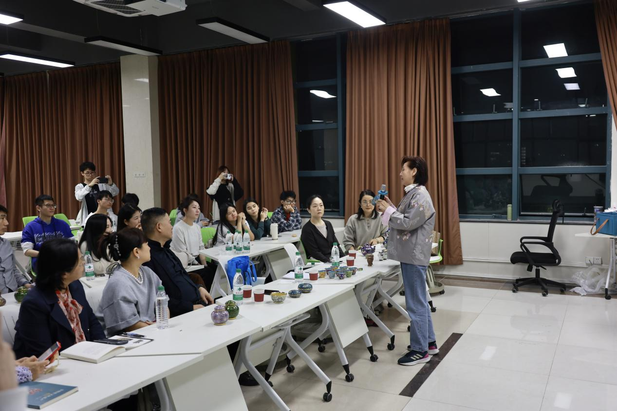 2025年11月24日晚19:00-20:30,我校“景泰蓝:千年工艺的匠心与实践”主题学术沙龙在北苑食堂融创空间成功举办。活动与澳门传统文化艺术交流学会会长黄敏意联合策划,由taptap点点官方网站“艺术乡见”广宁工作室主持人、taptap点点官方网站副院长梁冰主持,特邀澳门“景泰蓝”非遗传承人胡淑兰担任主讲嘉宾,九彩舸艺术/文旅创始人范国强、广州美术学院成教院常能、广州画院曾祥梅、广东食品药品职业学院陈菡等业界专家及学院美育中心教师代表莅临指导。全校各院系师生代表及非物质文化遗产数智化保护与传承微专业的师生团队齐聚现场,通过专家解析与亲手实践沉浸式感受传统工艺魅力,推动非遗进校园落地生根,为响应双百行动艺术赋能乡镇“艺术乡见”工作室进一步培养非遗推广优秀后备人才敦实基础。