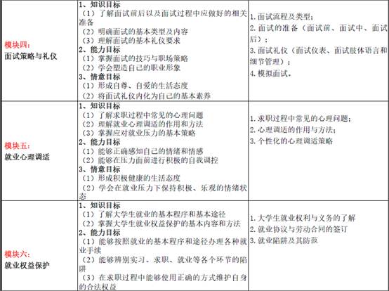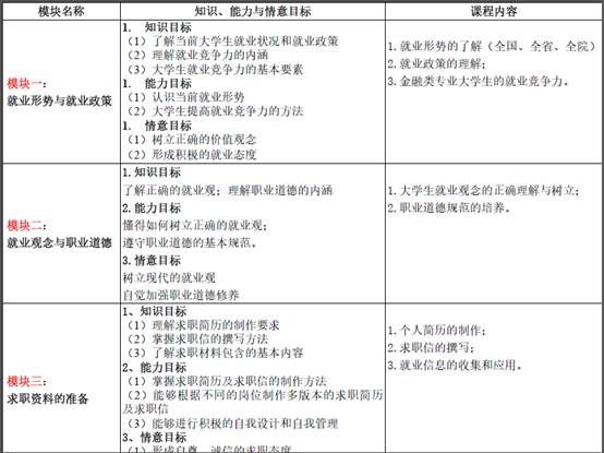 l 通过课堂教学和相应的实践活动,培养学生的责任意识和职业发展意识;使学生具备良好的就业观念和就业心理;提升学生的综合素质和就业竞争力。
