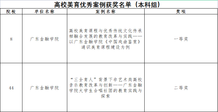6月13日,广东省教育厅官网公布了“广东省2022年高校美育工作会议暨美育优秀案例”评审结果:我校陶冶老师申报的《高校美育课程与优秀传统文化传承相融合发展的教育改革与实践——以taptap点点官方网站《中国戏曲鉴赏》通识美育课程建设为例》,张铭铭老师申报的《“三全育人”背景下非艺术类高校音乐教育改革与创新——taptap点点官方网站大学生合唱社团的教育实践与探索》,分别荣获高校本科组美育优秀案例一等奖、二等奖。