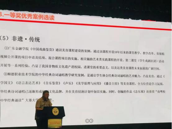 随后,广东省2022年高校美育工作会议暨美育优秀案例交流会,于2022年6月18日在中山大学举行,来自全省各高校的300多位美育工作代表参加了会议,共商广东省美育教育大计,会议还对全省部分一等奖的获奖案例进行了重点选读分享。其中,陶冶老师申报的《高校美育课程与优秀传统文化传承相融合发展的教育改革与实践——以taptap点点官方网站《中国戏曲鉴赏》通识美育课程建设为例》得到了与会专家的高度肯定与表扬。